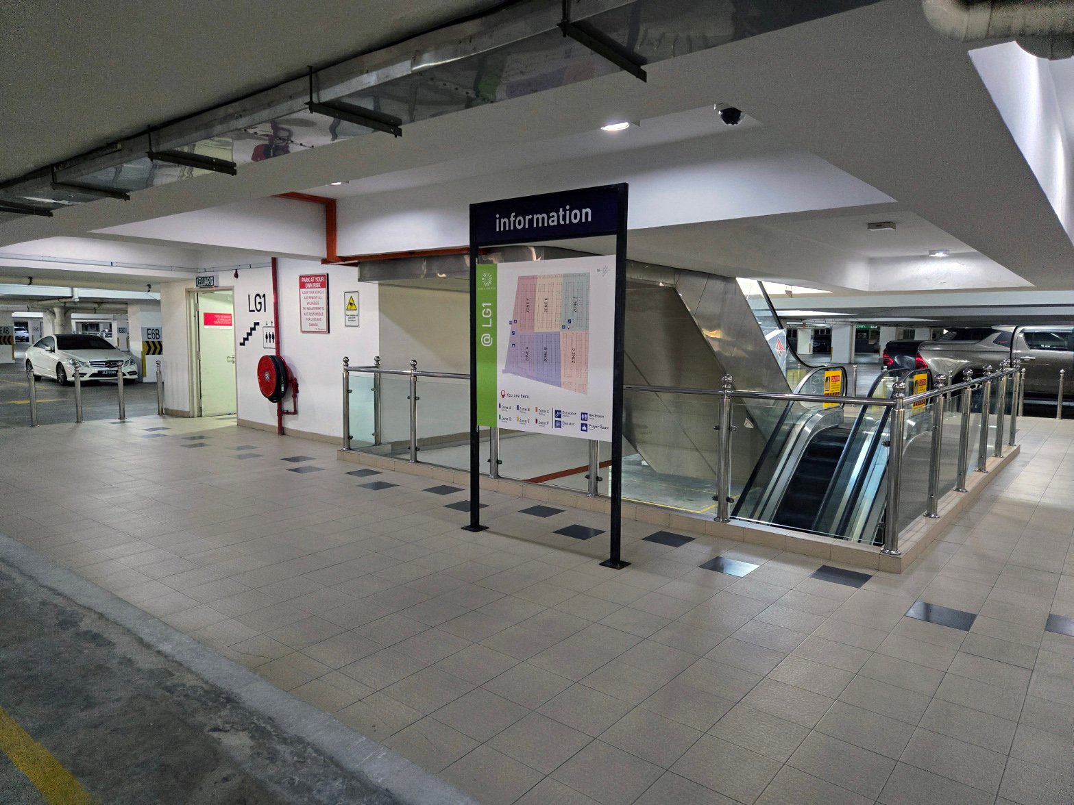 After entering the basement, park near the first escalator / lift that you see. If LG1 is full, drive down to LG2 and repeat the same approach.
